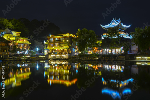 Fenghuang Ancient City Summer Night Scenery, Xiangxi, Hunan, China