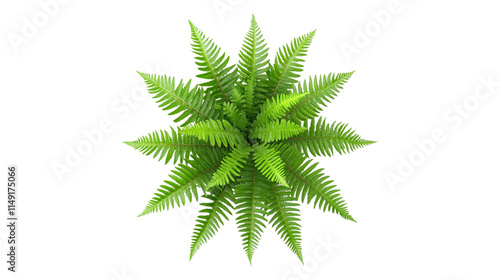Fern plant isolated on transparent background, Ornamental foliage, Green fern leaves, top view