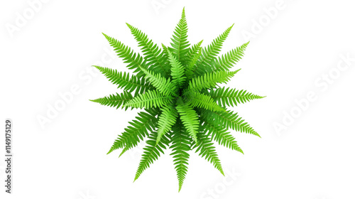 Fern plant isolated on transparent background, Ornamental foliage, Green fern leaves, top view