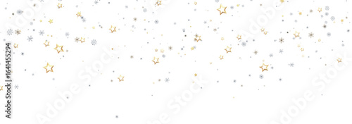 Festive background with gold and silver stars and snowflakes. Perfect for Christmas, New Year, or winter holidays.