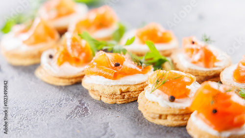 Festive canape with cream and smoked salmon