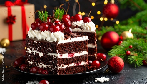 Festive Chocolate Cake with Cherries (1)