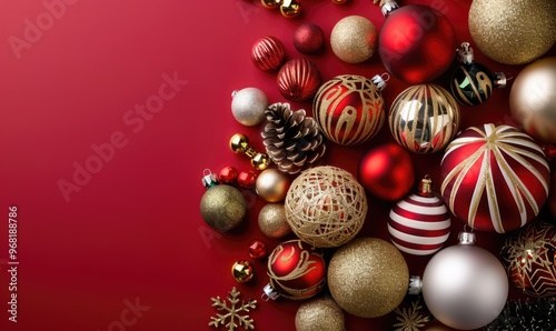 Festive Christmas Decorations on Rich Dark Red Background