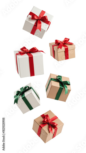 Festive gift boxes with colorful ribbons create joyful atmosphere, perfect for celebrations and special occasions