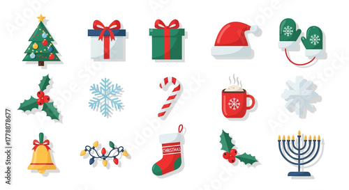 Festive holiday season icons: Christmas and Hanukkah symbols for joyful celebrations