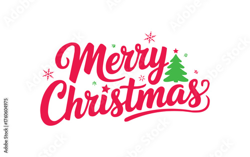 Festive Merry Christmas message with a cute Christmas tree, perfect for holiday cards and seasonal promotions, spreading joy and cheer this December