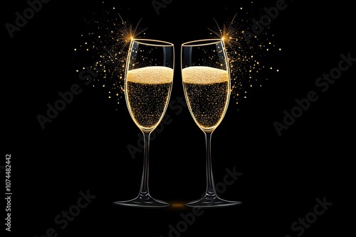 Festive New Year’s Banner with Champagne Glasses and Sparklers