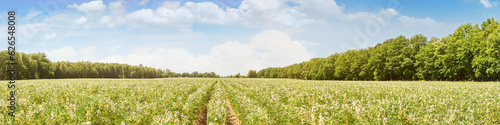 Field bean in summer with sun - Panorama
