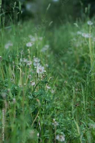Field with dandelions on a summer day
