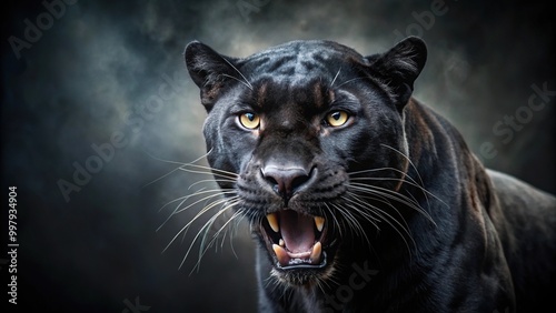 Fierce black panther roaring in isolation