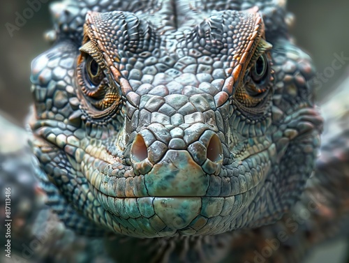 fierce looking dragon head closeup looking at camera