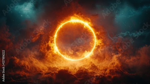 Fiery Circle Frame in Dramatic Night Sky