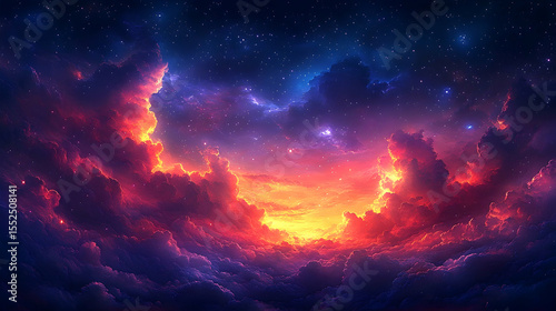 Fiery cosmic cloudscape vibrant red and blue nebula background