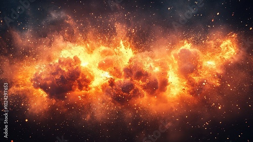 Fiery Explosion with Sparks and Smoke On Dark Background. Generate Ai Image
