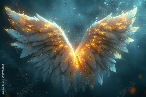 Fiery Feathers: A Glowing Angel's Wings in the Dark Generative AI