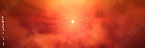 Fiery light rays radiating from a bright sun through dramatic clouds, creating a vibrant atmosphere