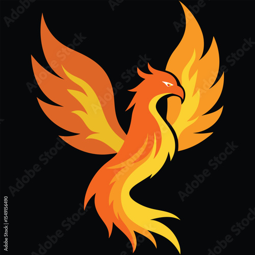 Fiery Phoenix Bird: Abstract Vector Illustration, Orange and Yellow Flames, Powerful and Majestic Design