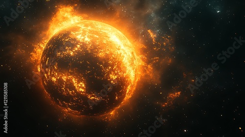 Fiery Planet Engulfed in Cosmic Flames Burning Brightly