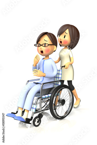 妻に車いすを押してもらう男性