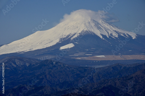 丹沢山地の檜洞丸からの眺望 雲被る雪の富士山