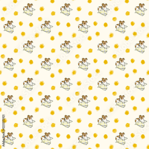 くつろぐジャックラッセルテリアのシームレスパターンクリーム色
