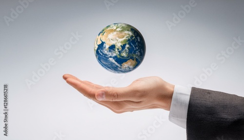 거대한 손 위에 떠 있는 작은 지구