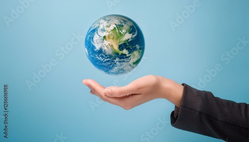 거대한 손 위에 떠 있는 작은 지구