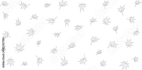 風に舞うもみじの葉 モノクロラインのイラスト素材