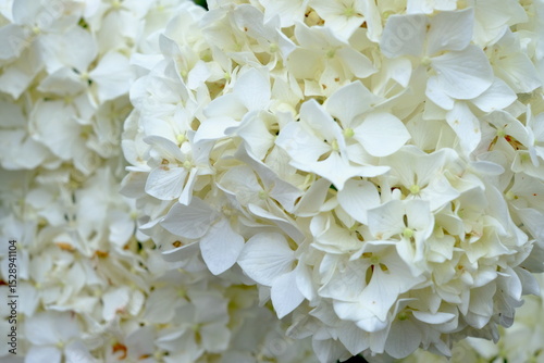 全面白いアジサイの花房クローズアップ