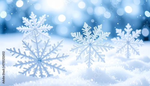 雪 雪の結晶 冬 雪景色 雪原 ブルー 白 ボケ 光 幻想的 キラキラ クリスマス ホリデー 氷 冷たい 静寂 背景 抽象 デザイン 清らか