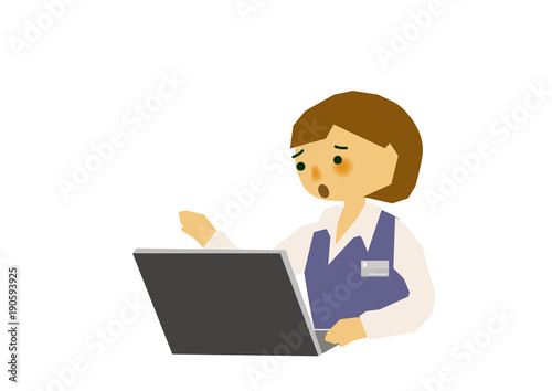 ノートパソコンで仕事する事務員の女性。