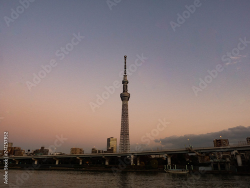 【都市景観】東京 台東区 隅田川からの夕景とスカイツリー