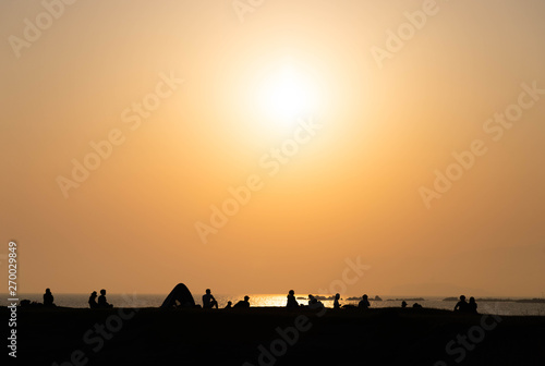 海辺の人々のシルエット