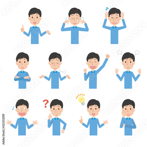 男性 感情 ポーズ セット 上半身