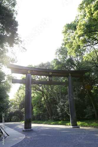 明治神宮 逆光の日本一の大鳥居