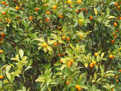 食べ頃の実をつけた金柑の木