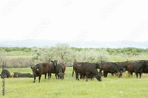 緑の牧場と牛
