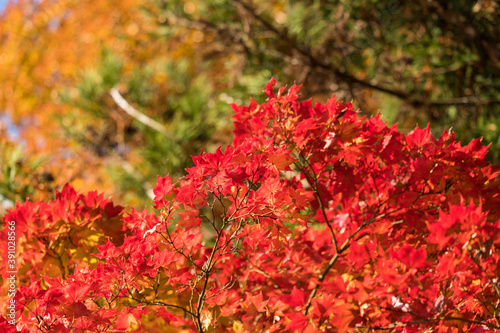 秋の鮮やかな赤色の紅葉の風景