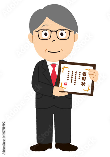 表彰される年配の男性