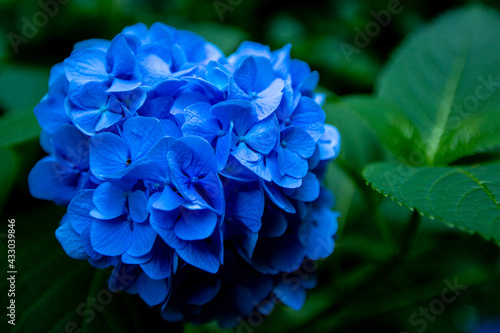 青い紫陽花のクローズアップ