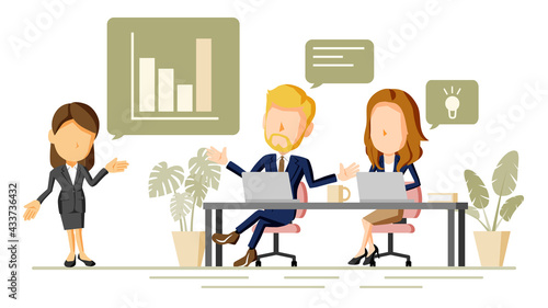 オフィスでミーティングをする人々のイラスト