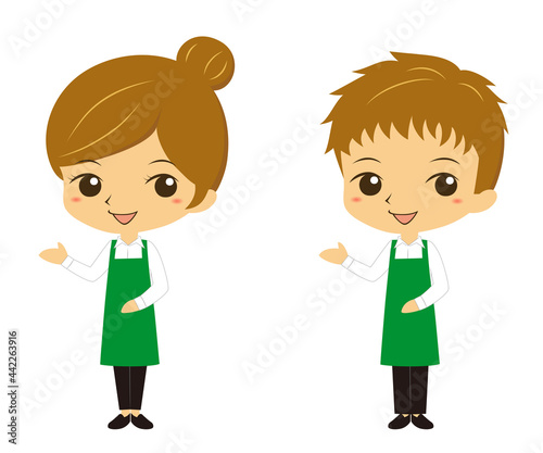 案内をするレストラン、カフェ店員