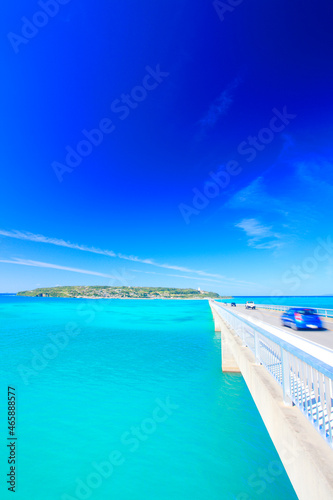 古宇利大橋と自動車と古宇利島, 名護市,沖縄県