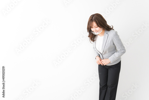 マウスガードを着けたビジネスウーマン
