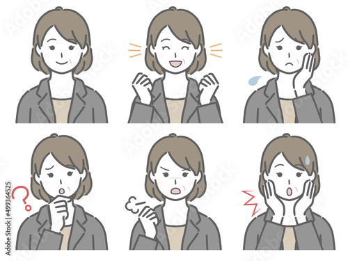 スーツの中年女性の色々な表情
