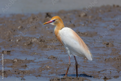 繁殖期に入り嘴に鮮やかな色が入ったアマサギ