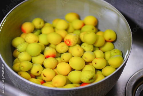 梅を水に浸ける様子
