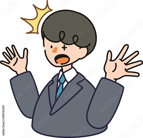 ベクターで描いた可愛いビジネスマンの男性のイラスト_びっくり驚く男性