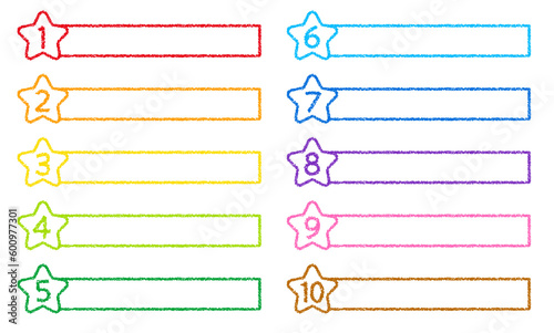 クレヨン素材 数字がついた星の形のタイトルデザインセット