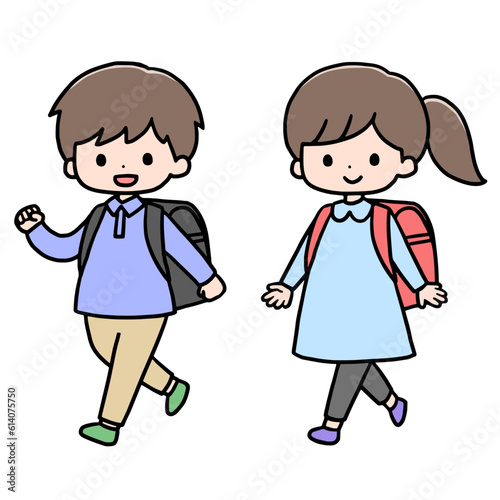 歩く小学生の女の子と男の子